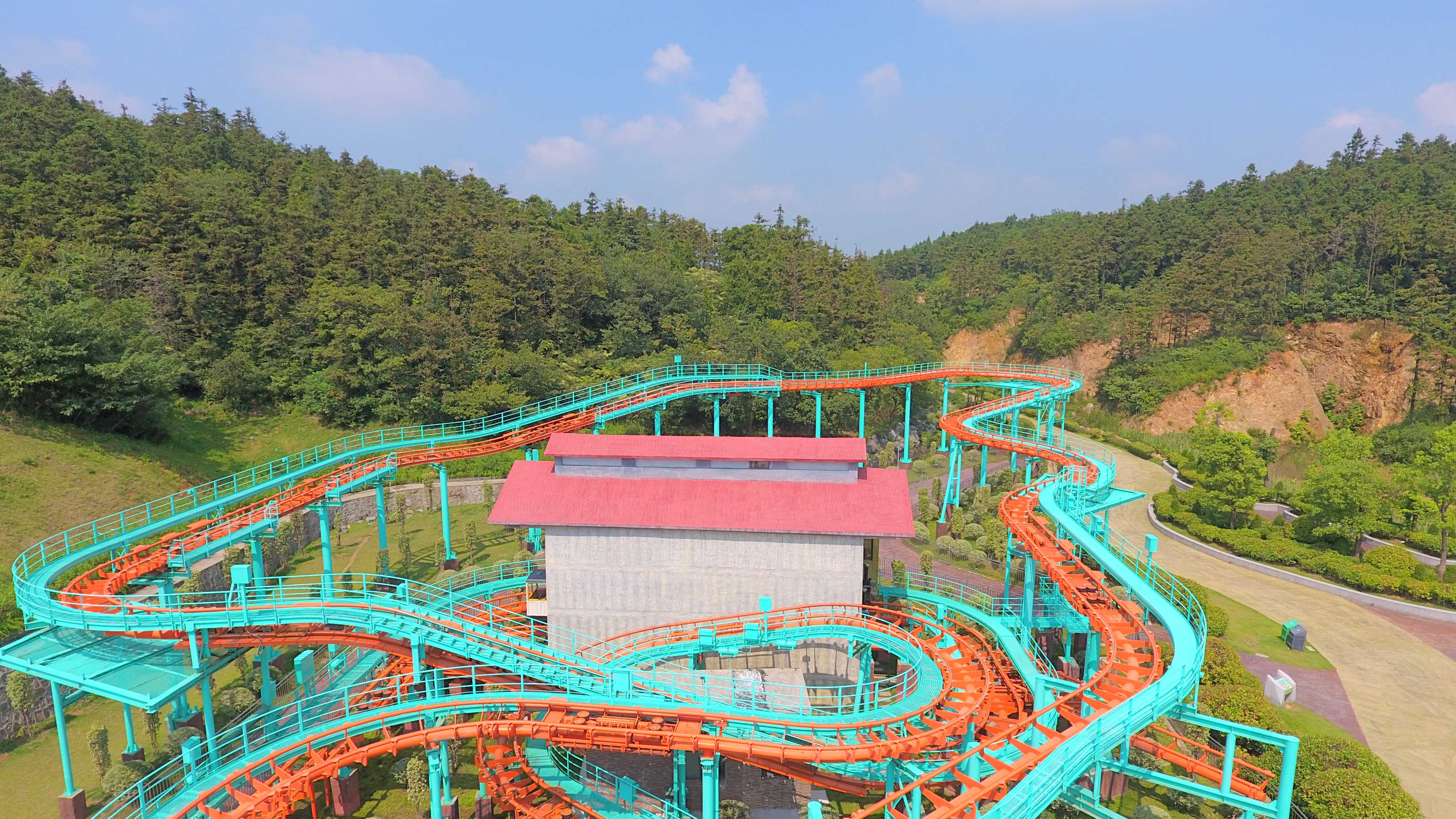 属于滑行类游乐设施,有高速俯冲下滑段、高空翻转的立环段、螺旋推进的螺旋段组成,非常惊险刺激。轨道总长八百米,最大运行高度32米,最大运行速度77km/h,限乘20人。