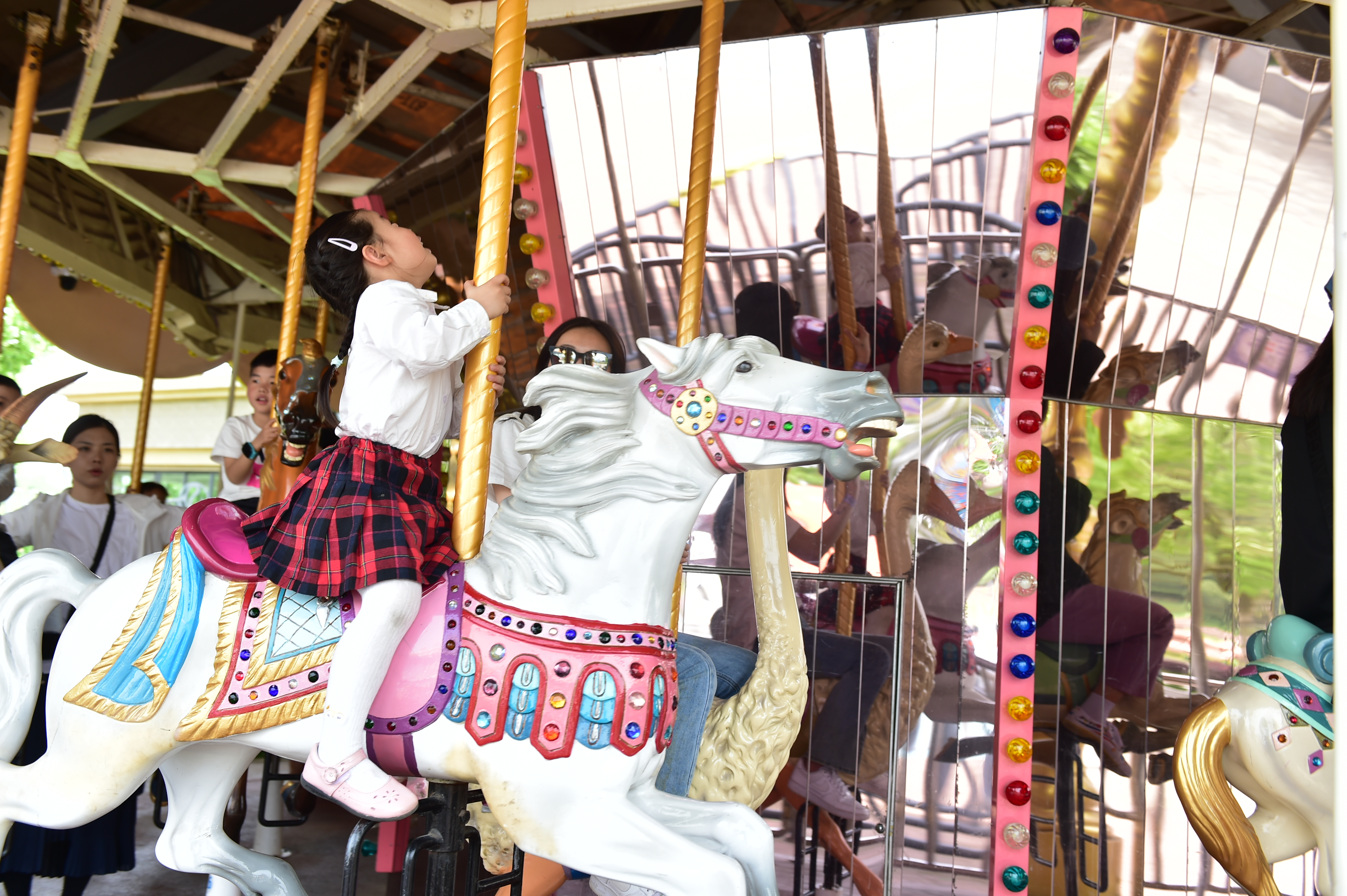 童话公主般的视觉体验,莫过于这豪华的皇家马车,相传只要两个真心相爱的人同时坐在旋转木马上,木马就会载着他们到一个完美的天堂,他们的爱情就会天长地久!