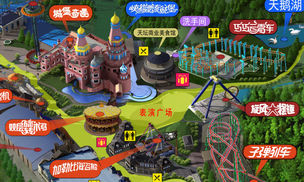 高60米的自由落体,上下运动的同时还会做自转的运动,荷叶为伴荷花莲座,在提升过程中进行360°旋转,当座舱提升到一定高度后进行自由落体运动,由上而下急速降落,融合弹射和坠落的...