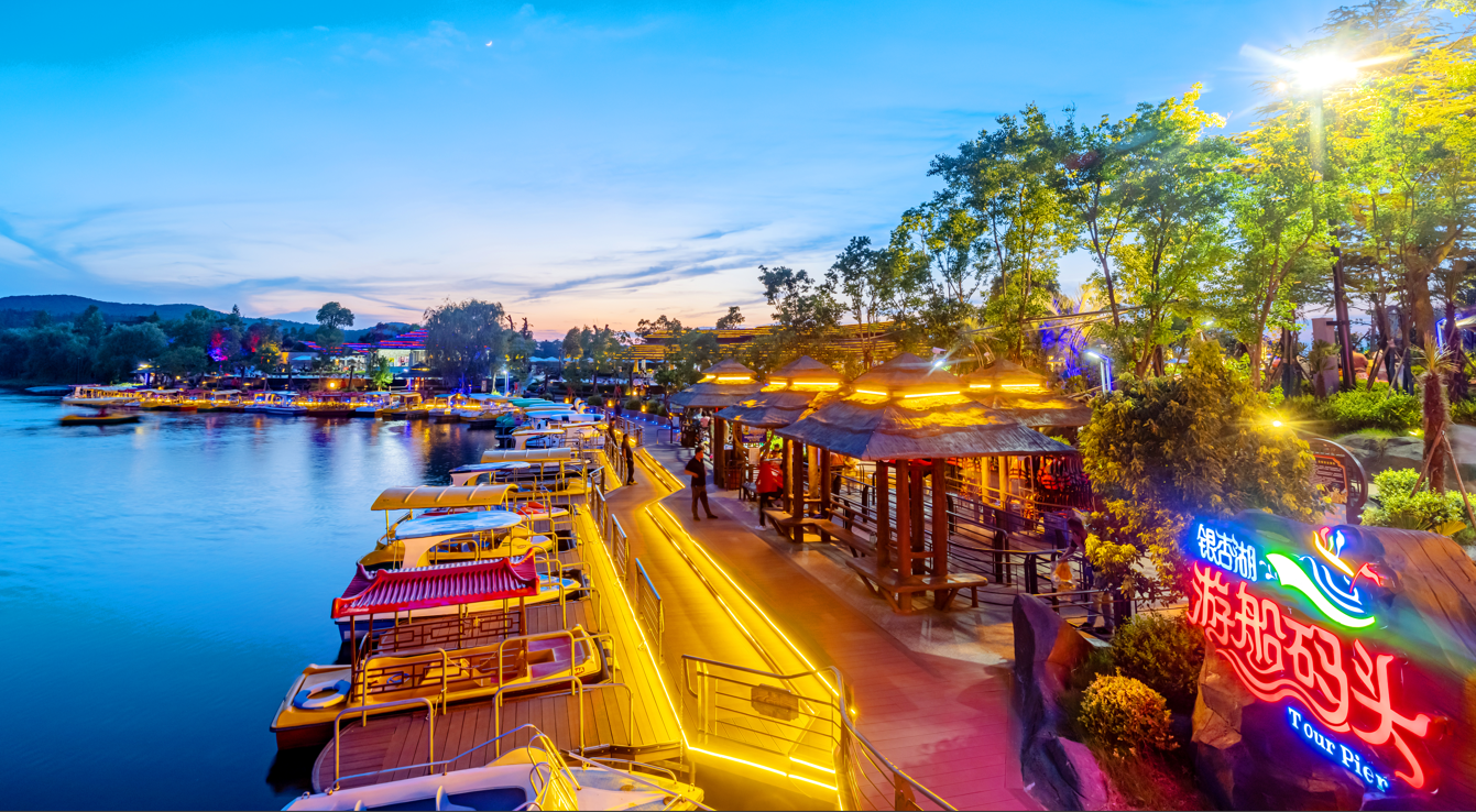 游船码头位于银杏湖生态区,水世界旁边,坐着小船可跨越爱情岛,一边赏自然风光,一边呼吸新鲜空气,褪去平日的疲惫,享受此刻的放松与欢乐。注:游船需按时收费,不包含在一票嗨玩项目,具体收费细则以现场实际为准。