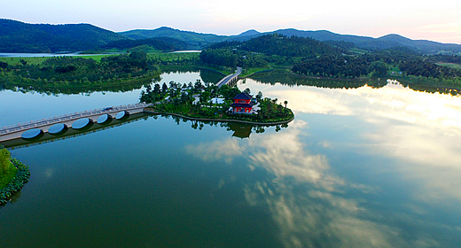 广阔平静的湖面中央架起两座长桥相连,仿佛特地为了牛郎织女相会而搭建。相传一对情侣相约分别从两头走到中心,若同时到达中心,便可以长长久久,永不分离。